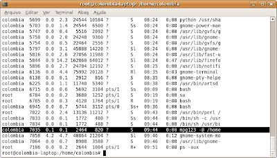 Só para testar o “despertador” eu programei ele para tocar às 09:44 para assim provar que ele estava funcionando. Para ver isso basta digitar ps -aux. Fiz isso pq para desligar o “despertador” eu preciso “matar” o processo e para isso eu preciso saber o pid do processo que neste caso é o 7035 Sabendo isso eu digitaria kill -9 pid ou então poderia fazer esse processo via top. Aí fica a seu critério.