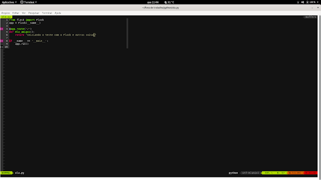 O Flask é um web framework que ainda não conheço muito (na verdade não conheço nenhum) e por isso tô aqui devagarinho, fazendo o que todo bom samaritano deveria fazer, isto é, ler e reler a documentação existente e ir testando.